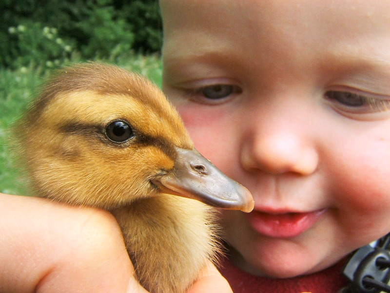 Streichelzoo für Kleinkinder: Kaninchen bei der Tagespflege zwischen Erfurt und Gotha Natur erleben: Kleinkind beobachtet bei der Tagesmutter ein Entenküken Schon die Kleinsten helfen beim Füttern der Tiere mit: Kinderbetreuung in Cobstädt Naturerlebnis bei der Tagesmutter zwischen Erfurt und Gotha